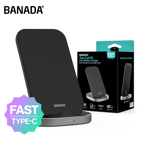 [바나다] 트윈코일 15W 고속무선충전 거치대 (PD충전기 지원) [BOX (x50EA)단위 구매가능]